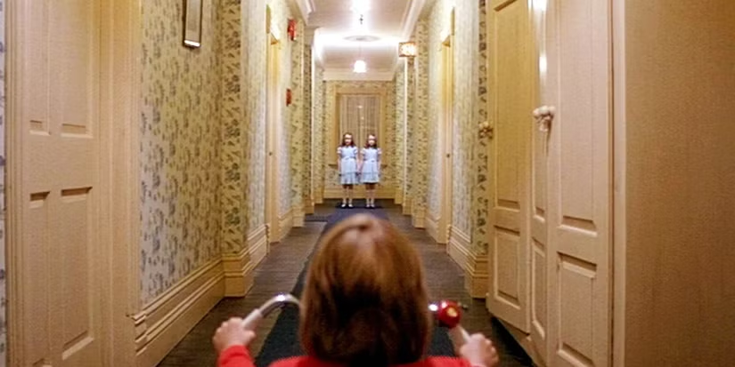 - Famous example: The Shining: Danny riding his tricycle through endless symmetrical hallways, until the twins appear.